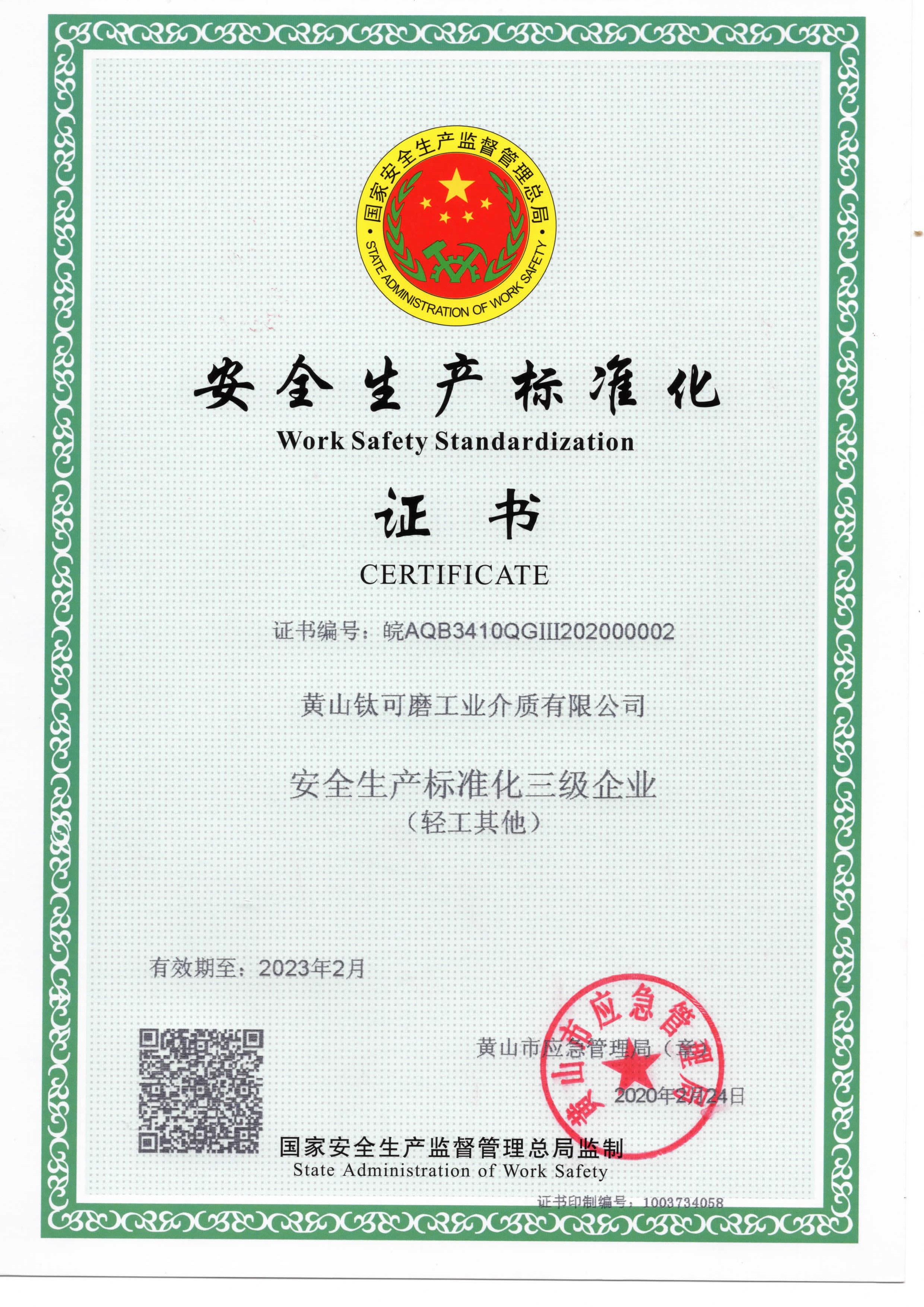 安全生產證書